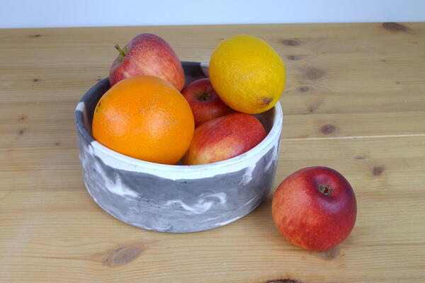 Silicone mold for multiple use: one-piece seamless "glove" mould to cast big round bowl.