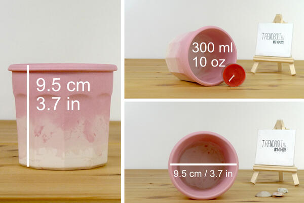 This reusable silicone mould is intended to cast big concrete, jesmonite or resin pot shown on the photo, that can also be used for pouring modern, minimal candles.