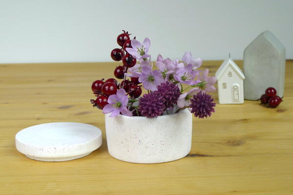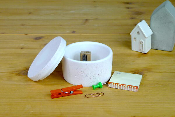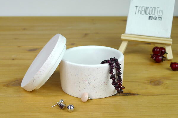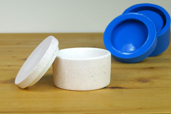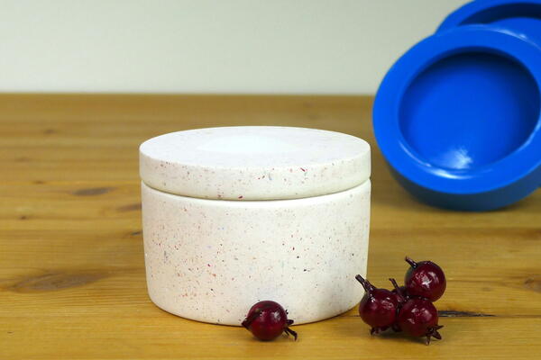 These reusable silicone moulds are intended to cast a small pot with thin walls and lid shown on the photo that can be used for keeping jewellery, coins, knick-knacks, or for candle pouring.