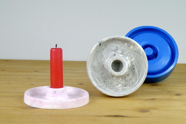 Silicone mould to cast concrete candle holder for 18-22 mm candlesticks.