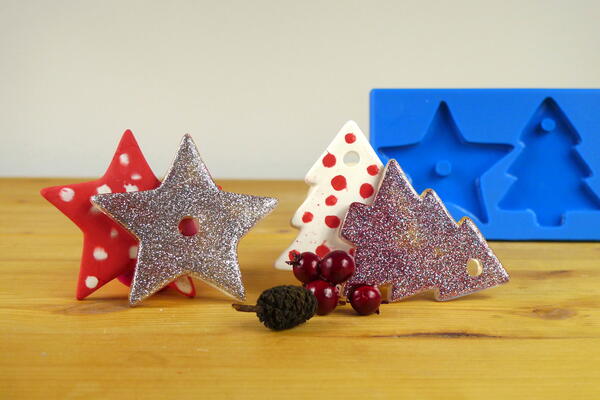 Thes reusable mold is intended to make small fur tree shape and star shown on the photo, that can be used as Christmas decor.