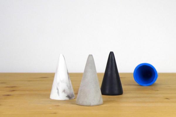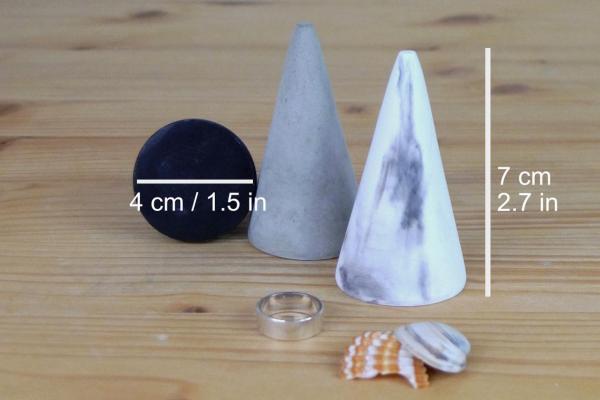 This reusable mold is intended to make small cone/ring holder with base diameter 4 cm (1.5in) x height 7 cm (2.7in) shown on the photo.