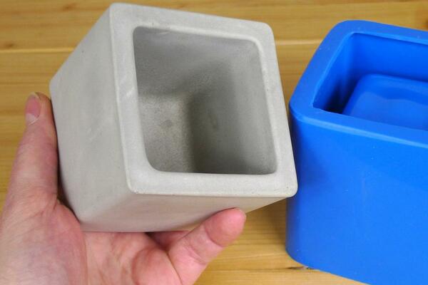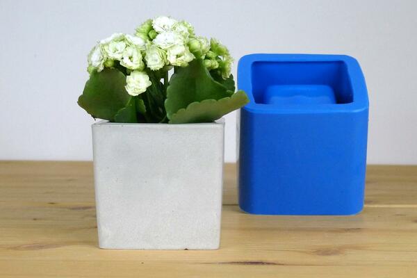 Silicone mold for multiple use: one-piece seamless mould to cast square planter with thicker walls.