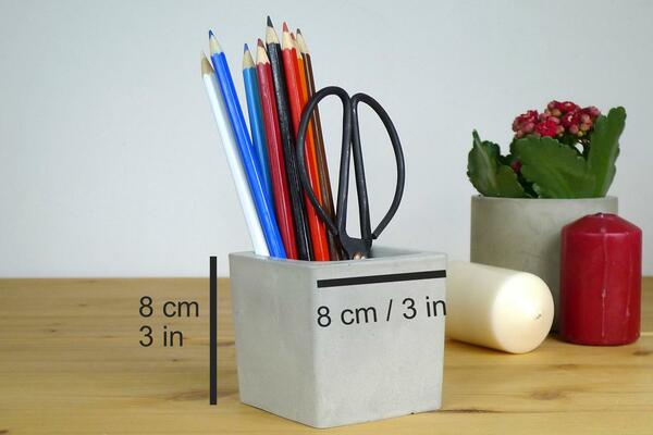 With this mold you can make medium cube concrete flower pots, wider at the top, narrower at the bottom with ± dimensions shown on the photo.