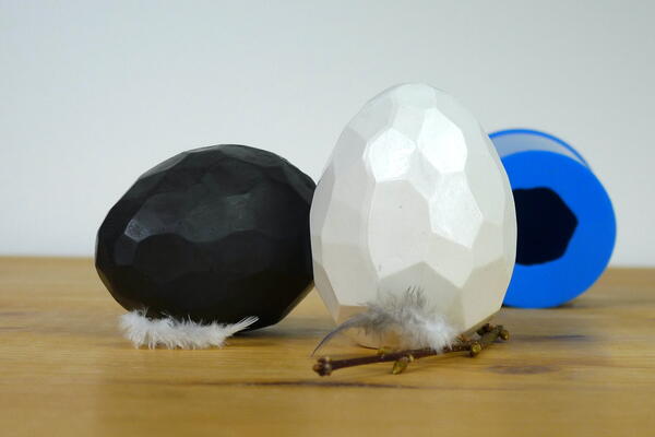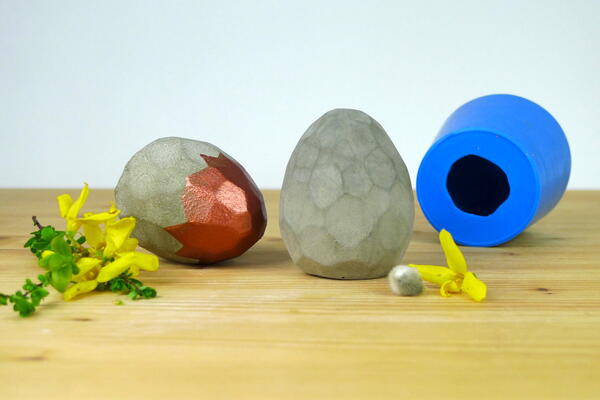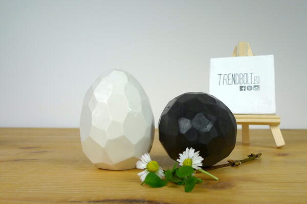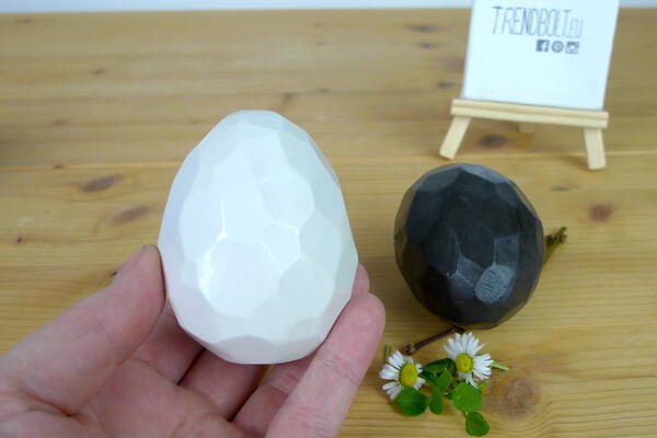 Silicone mold to cast faceted Easter egg, that can be used as bookend, paper weight, shelf or desk decor.