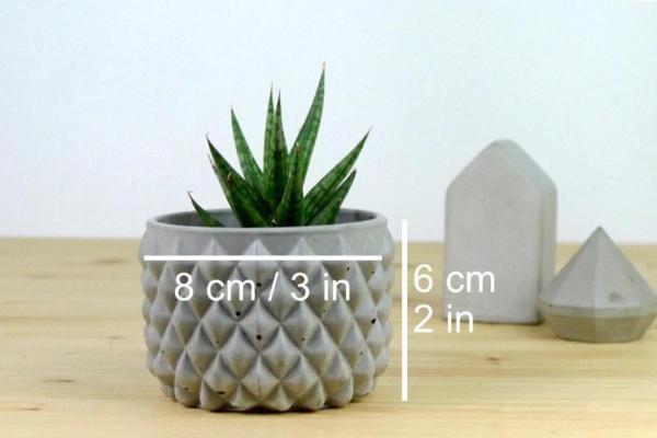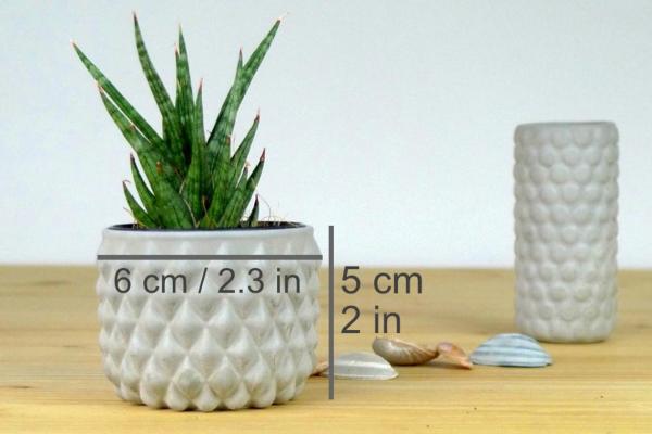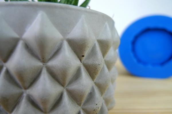 Reusable silicone moulds are intended to cast small and medium flower pots with geometric, bubble texture and ± dimensions shown on the photo.