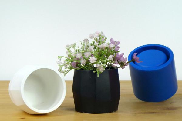 Silicone mold for multiple use: one-piece seamless mould to cast medium geometric pot with thinner walls.