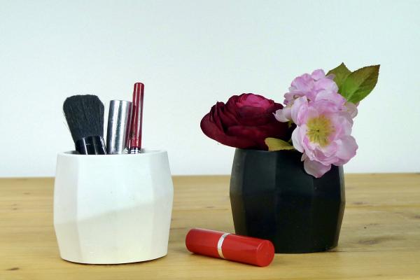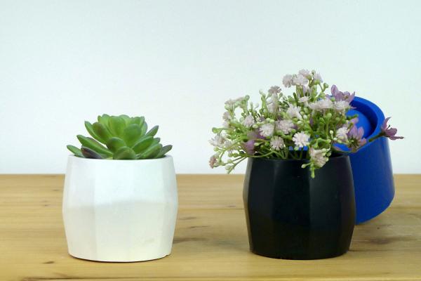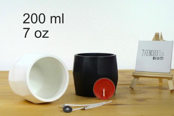 This reusable silicone mould is intended to cast medium concrete pot with geometric walls shown on the photo, that can also be used for pouring modern, minimal candles.