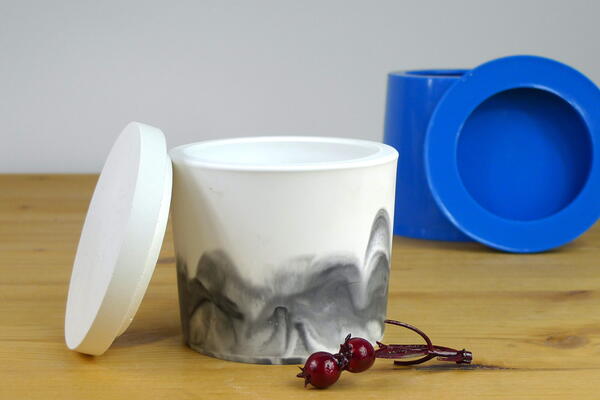 Silicone mold for multiple use: one-piece seamless mould to cast medium round planter with thicker walls.