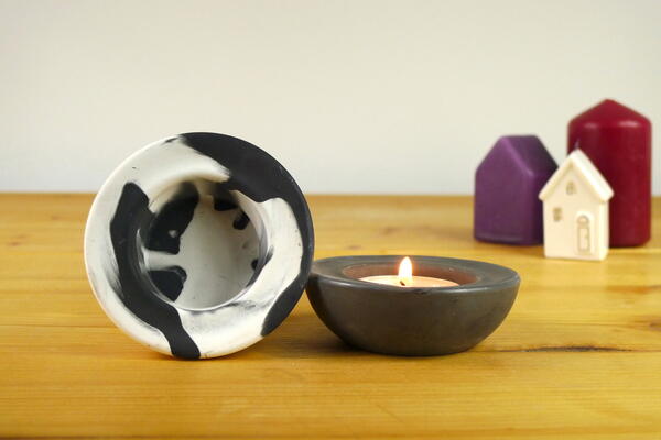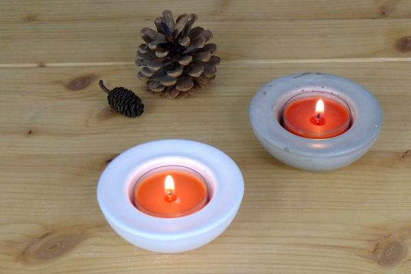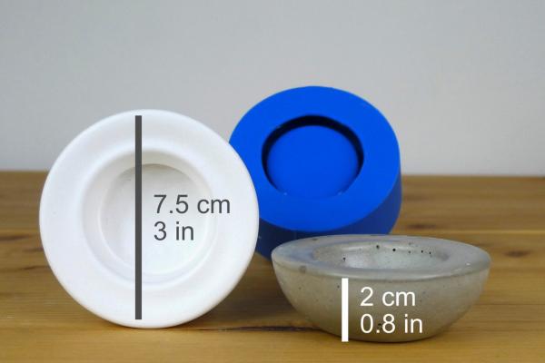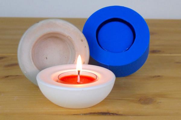 This reusable, easily stretched silicone mould is intended to make T-light candleholder with ± dimensions shown on the photo.
