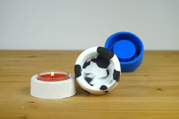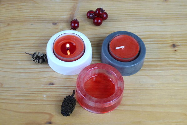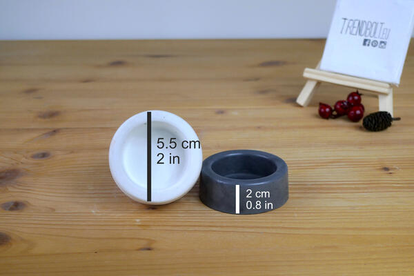 Durable, easy to use silicone mold is intended to cast small round candleholder shown on the photo. When used with epoxy resin it creates shiny surface.