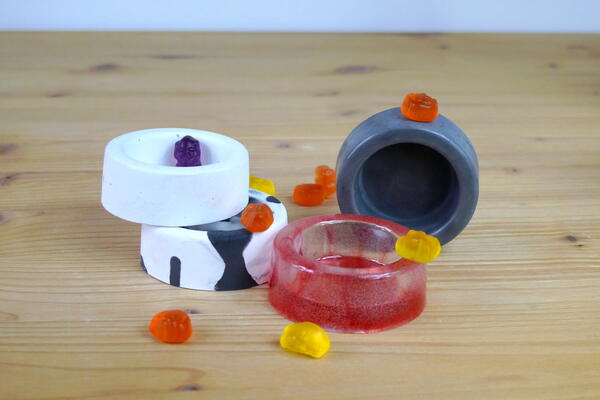 Pictured materials: cement, Raysin, Jesmonite, resin.