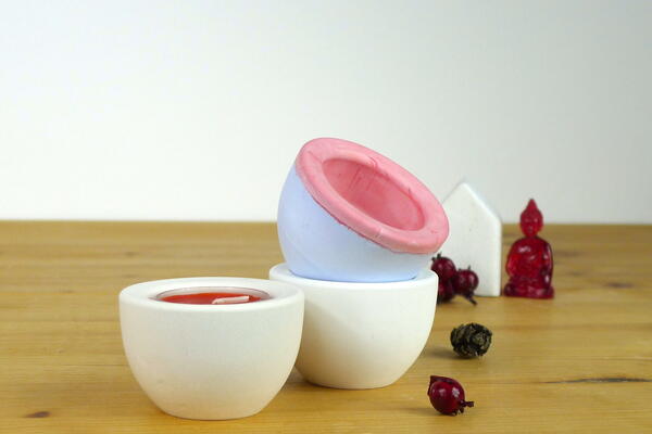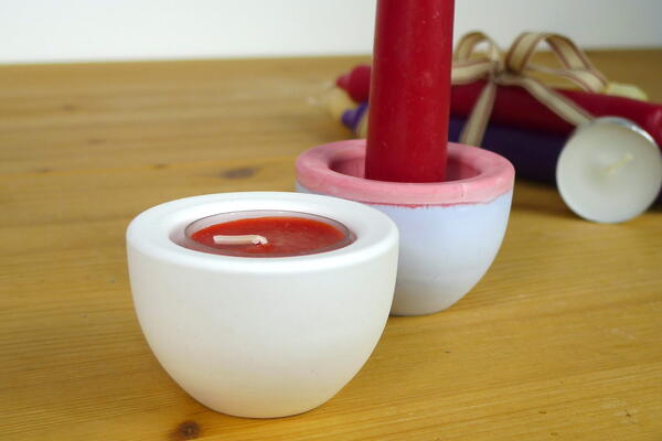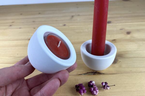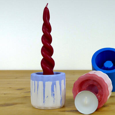 Silicone mould to cast concrete candle holders: 2-in-1 piece both for candlesticks and t-light candles.