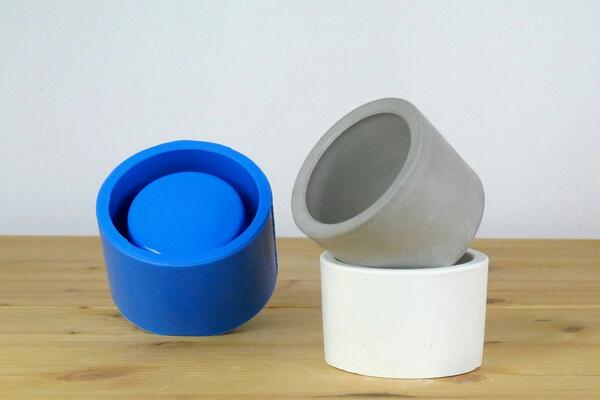 Silicone mold for multiple use: one-piece seamless mould to cast medium round planter with smooth, straight, thicker walls.