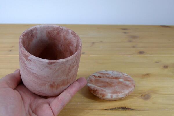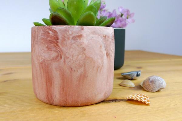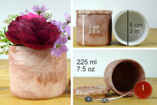 This reusable silicone mould is intended to cast medium concrete/jesmonite/Raysin flower pot or candle container shown on the photo, with thin walls and rounded bottom.