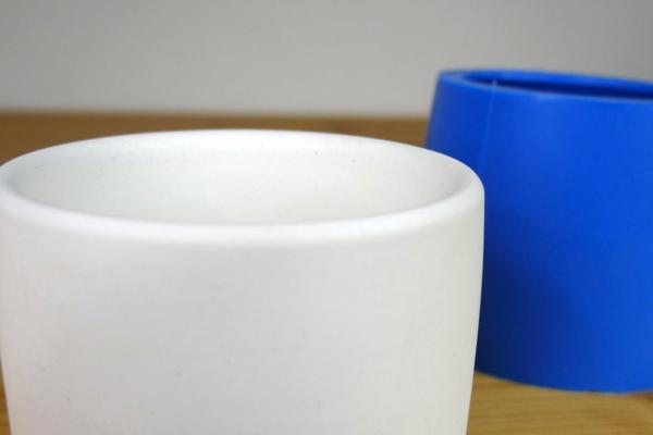 Silicone mold for multiple use: one-piece seamless mould to cast planter with rounded bottom and thin walls.