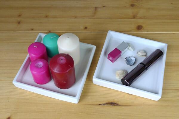 This reusable mold is intended to make lightweight and smooth vanity decorative tray shown on the photo.
