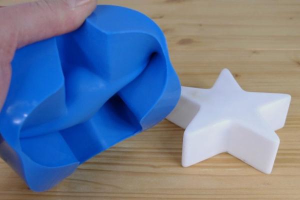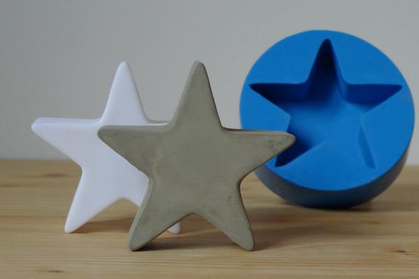 Silicone mold for multiple use: one-piece seamless mold to cast concrete star sign.