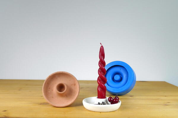 Silicone mould to cast concrete candle holder for 22 mm candlesticks.