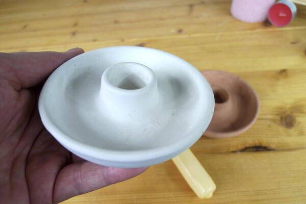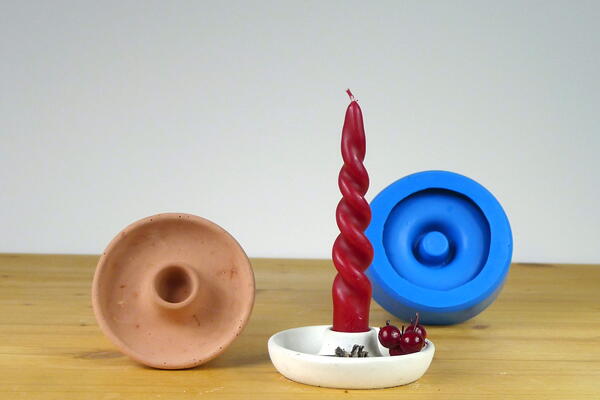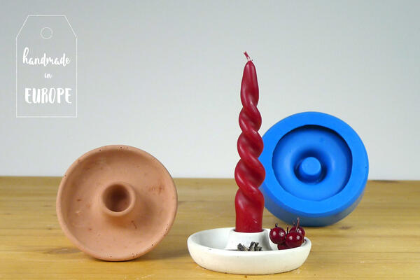 Durable, easy to use silicone mold is intended to cast rounded plate candlestick holder shown on the photo.