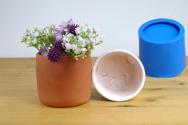 This reusable silicone mould is intended to cast concrete pot with lid shown on the photo, that can also be used for pouring modern, minimal candles.