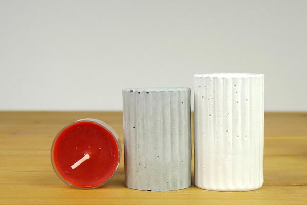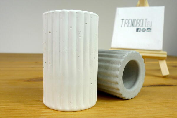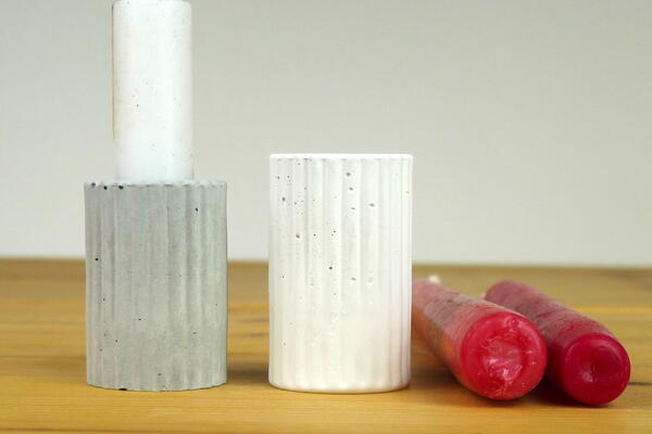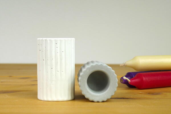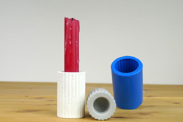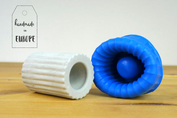 Silicone mould to cast concrete, jesmonite or resin round candle holders with stripy pattern for stick candles.