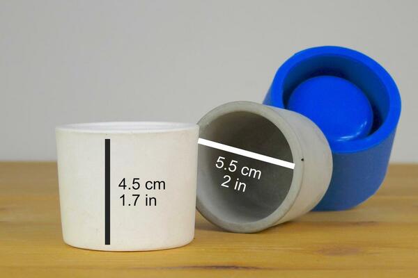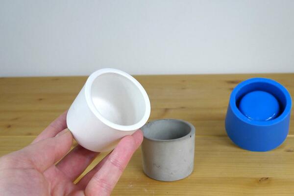 Silicone mold for multiple use: one-piece seamless mould to cast small cylinder pot.